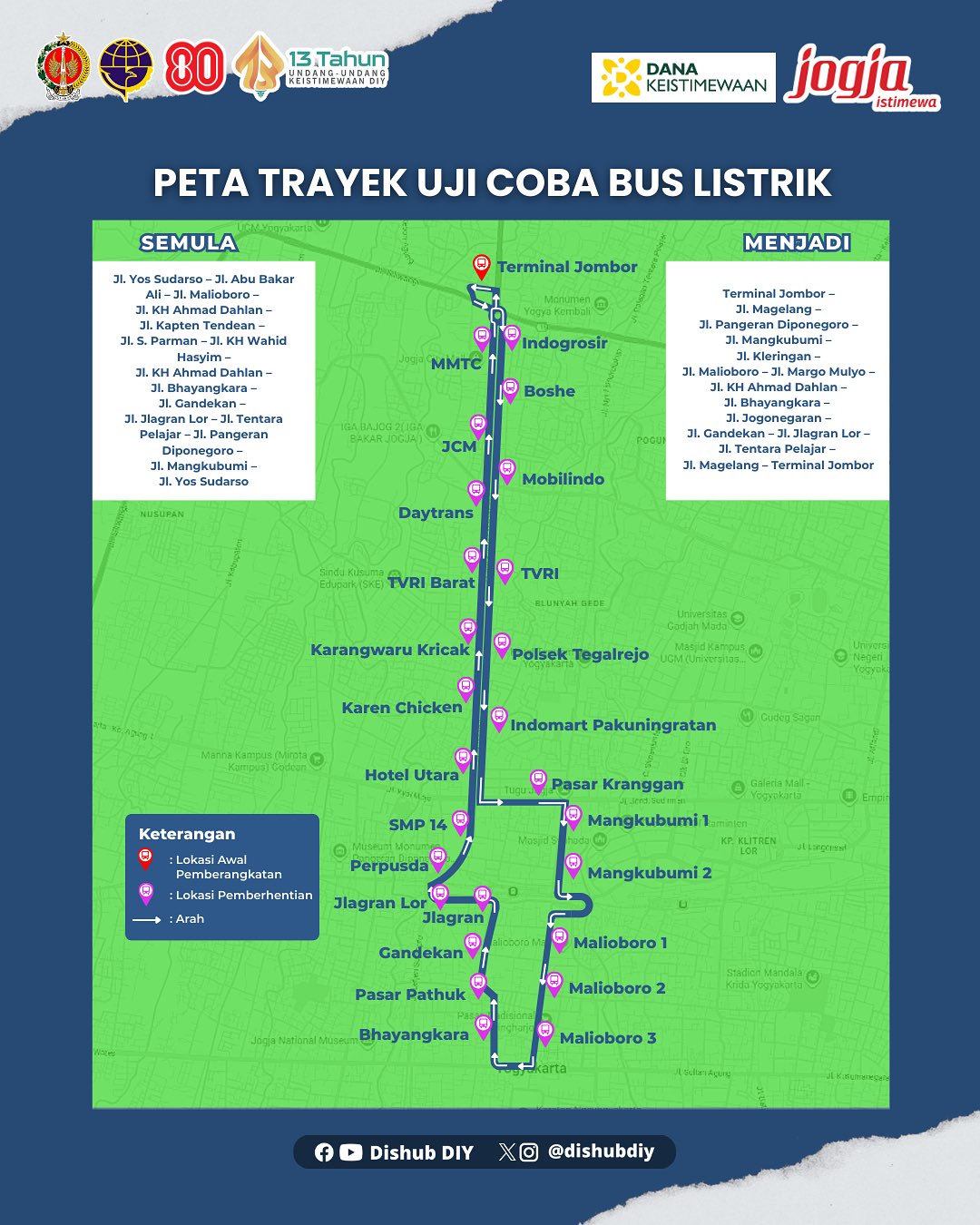 Jika sebelumnya bus listrik hanya melayani perjalanan dari Ngabean menuju Malioboro, kini jalurnya diperpanjang hingga Terminal Jombor.